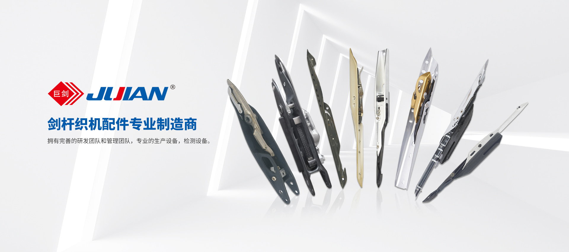 浙江巨劍紡織機械有限公司,是一家專業研制、開發和生產進口及國內劍桿織機配件的生產型企業。自2002年開始, 公司陸續開發各種劍桿頭、導勾、導軌、提花機配件、劍帶等各種易損件, 并獲得多項國家專利。巨劍擁有大量優秀的專業技術人才和研發團隊、管理團隊···